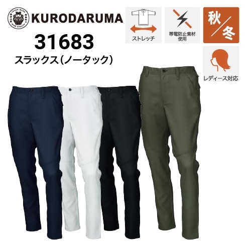 クロダルマ 31683 スラックス ポリエステル100% ストレッチ 制電 2023新作|作業着・作業服の通販ワークキング【公式】