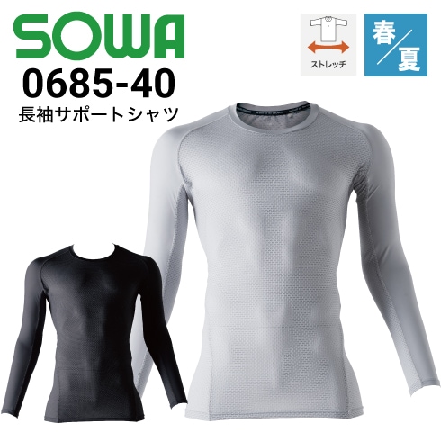 桑和 0685-40 長袖サポートシャツ 春夏 ストレッチ 吸汗速乾 接触冷感 UVカット 消臭 2025新作|作業着・作業服の通販ワークキング【公式】