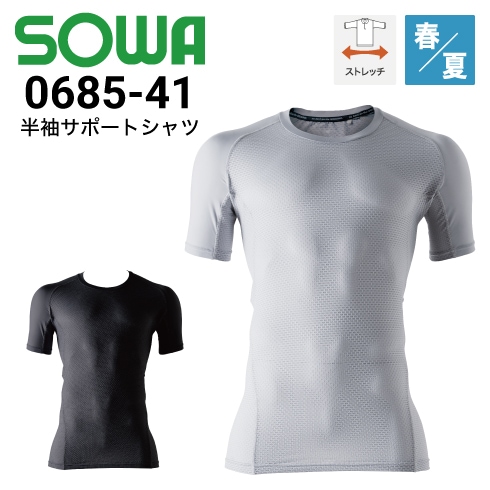 桑和 0685-41 半袖サポートシャツ 春夏 ストレッチ 吸汗速乾 接触冷感 UVカット 消臭 2025新作|作業着・作業服の通販ワークキング【公式】