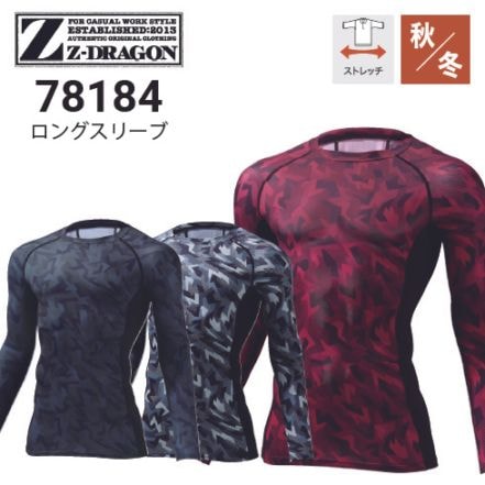 Z-DRAGON 自重堂 78184 長袖インナー 秋服 ストレッチ 吸汗・速乾 吸湿発熱 静電気ケア 2025新作|作業着・作業服の通販ワークキング【公式】