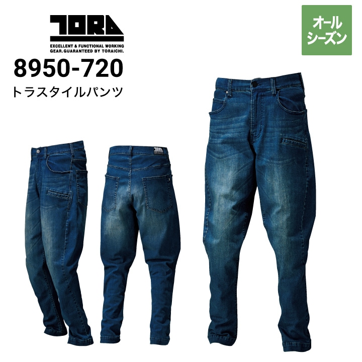寅壱 8950-720 トラスタイルパンツ オールシーズン デニム ストレッチ ヴィンテージ加工|作業着・作業服の通販ワークキング【公式】