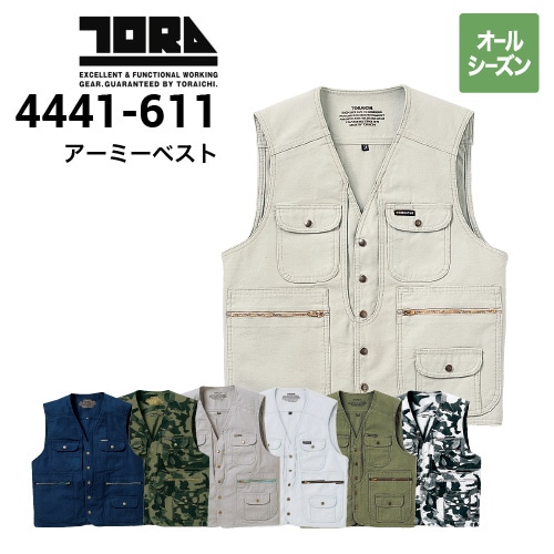 寅壱 TORAICHI 4441-611 アーミーベスト 綿100% 鳶服 オールシーズン|作業着・作業服の通販ワークキング【公式】