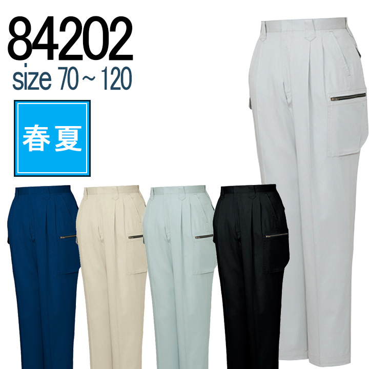 自重堂 JICHODO 84202 ストレッチ ツータックカーゴパンツ 春夏 綿100% 防縮防シワ加工|作業着・作業服の通販ワークキング【公式】
