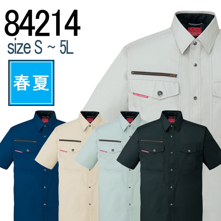 自重堂 JICHODO 84214 ストレッチ 半袖シャツ 春夏 綿100% 防縮防シワ加工|作業着・作業服の通販ワークキング【公式】