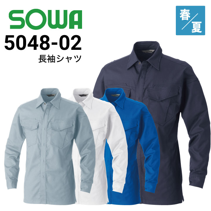 桑和 SOWA 5048-02 長袖シャツ 春夏 ストレッチ 防汚加工 吸汗 綿100% 2021新商品|作業着・作業服の通販ワークキング【公式】