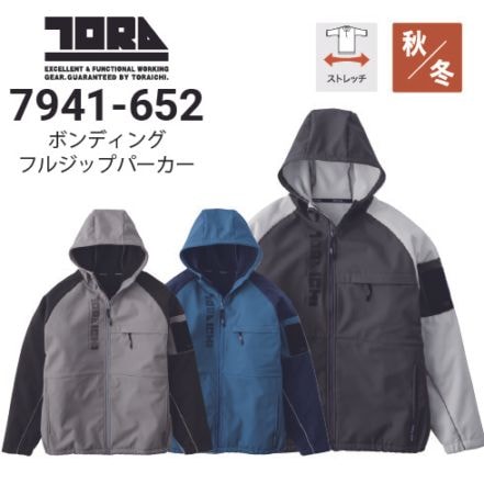 寅壱 7941-652 ボンディングフルジップパーカー 秋冬 防風 保温 ストレッチ 再帰性反射 裏起毛 2025新作|作業着・作業服の通販ワークキング【公式】