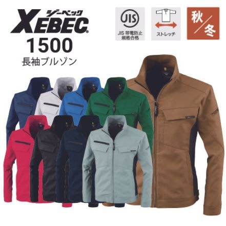 ジーベック 長袖ブルゾン 1500 ストレッチ伸縮素材 帯電防止 秋冬 2021新商品 XEBEC|作業着・作業服の通販ワークキング【公式】