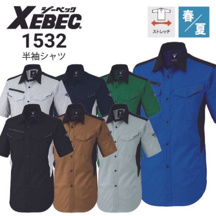 ジーベック XEBEC 1532 半袖シャツ ストレッチ 帯電防止 バイオペット素材 春夏 2025新商品|作業着・作業服の通販ワークキング【公式】