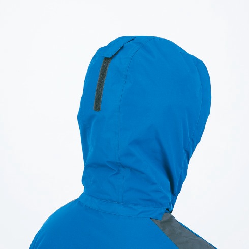 ヘルメット対応の大型フードはスピンドル+アジャスト調整付き。