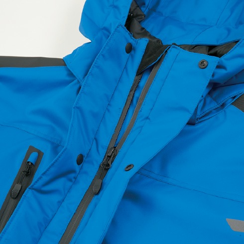 雨や雪の浸入を防ぐ高い防水性と高水準の透湿保温性で、外からの冷たい風や雨を防ぎつつ、内部の湿気を逃がします。突然の雨にも対応可能で、長時間の作業でも快適な着心地を保ちます。