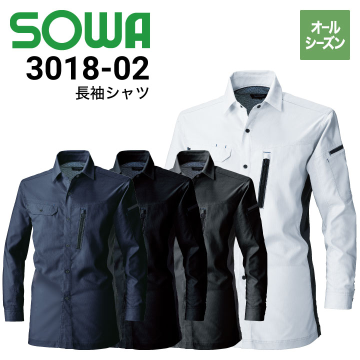 桑和 SOWA 3018-02 長袖シャツ ストレッチ 春夏 制電性素材 TC 消臭 2020新商品|作業着・作業服の通販ワークキング【公式】