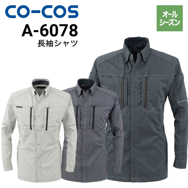 コーコス信岡 CO-COS A-6078 長袖シャツ オールシーズン ストレッチ 消臭 野帳対応 ユニセックス 2020新商品|作業着・作業服の通販ワークキング【公式】