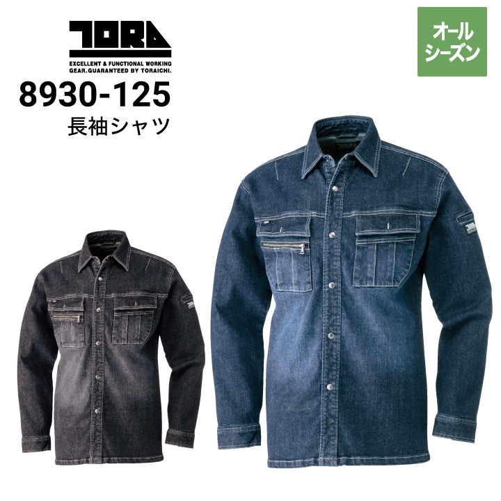 寅壱 8930-125 長袖シャツ オールシーズン デニム ストレッチ|作業着・作業服の通販ワークキング【公式】