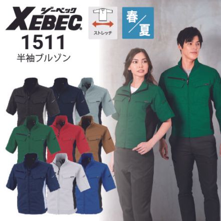 ジーベック XEBEC 1511 半袖ブルゾン ストレッチ 帯電防止 春夏 2022新商品|作業着・作業服の通販ワークキング【公式】