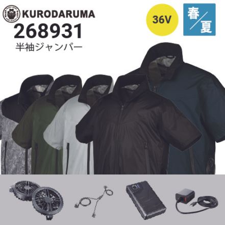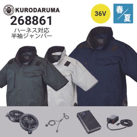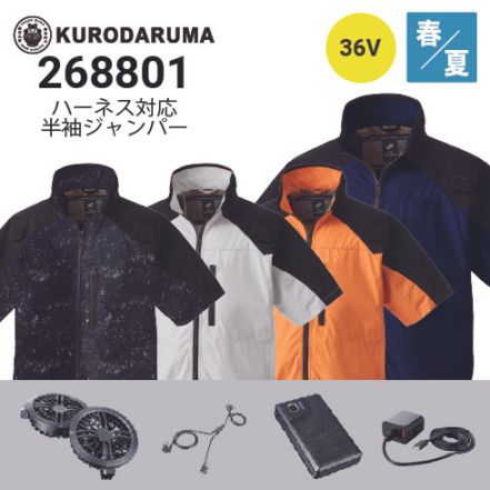 クロダルマ 空調服 半袖ブルゾン 268801 36Vファン・バッテリーフルセットKS-300 ハーネス対応 軽量 撥水 |作業着・作業服の通販ワークキング【公式】