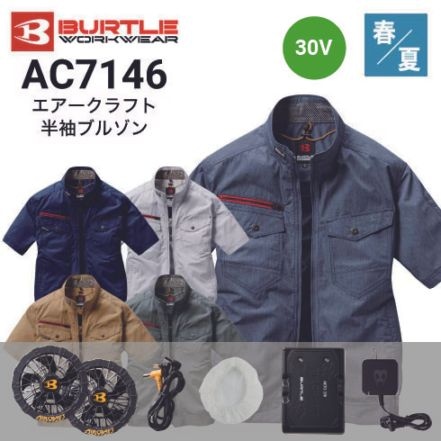 バートル AC7146 エアークラフト 半袖ジャケット ブルゾン TC素材 バッテリーセット AC10・AC10-1(2026年モデル)|作業着・作業服の通販ワークキング【公式】