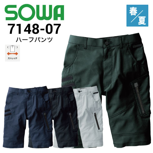 桑和 SOWA 7148-07 G.GROUND ハーフパンツ 春夏 ストレッチ 放湿性素材 ポリエステル100% 消臭 2020新商品|作業着・作業服の通販ワークキング【公式】