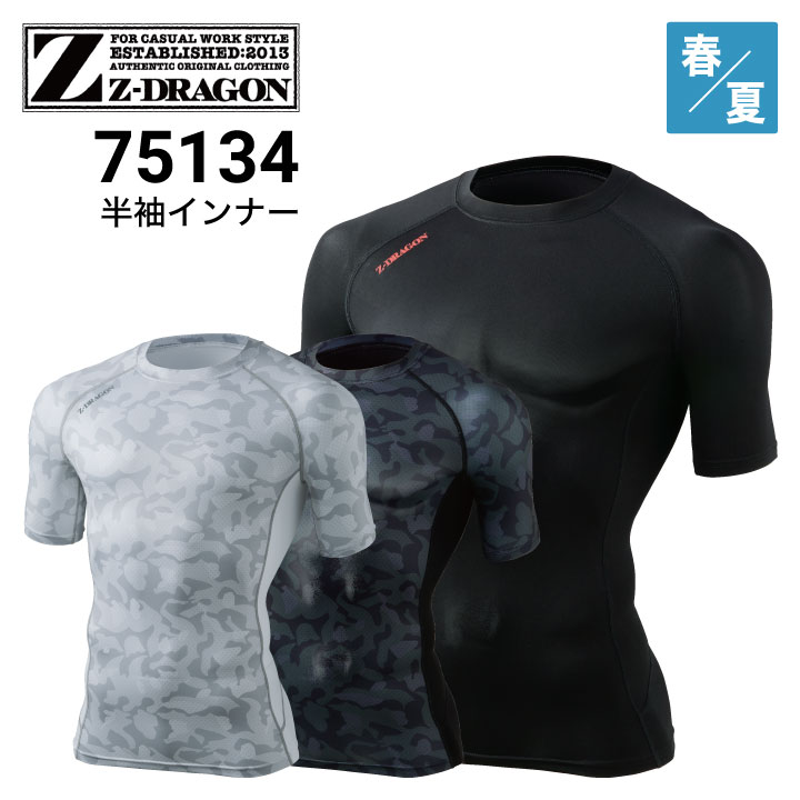 Z-DRAGON 75134 半袖コンプレッション ショートスリーブ 春夏 ストレッチ 接触冷感 消臭 抗菌 吸汗速乾 自重堂 2020新商品|作業着・作業服の通販ワークキング【公式】