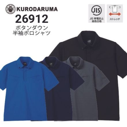 クロダルマ 26912 ボタンダウン半袖ポロシャツ 春夏 ストレッチ 通気性 JIST8118 2026新作|作業着・作業服の通販ワークキング【公式】