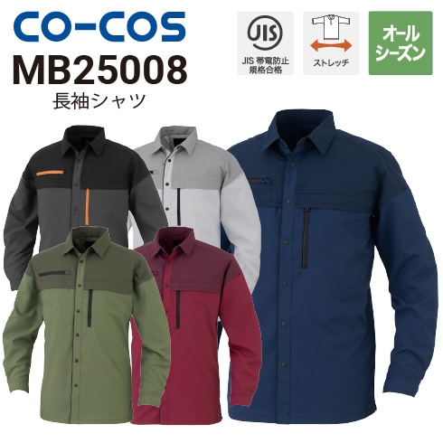 コーコス信岡 MB25008 長袖シャツ 秋冬 JIS対応 帯電防止素材 ストレッチ 反射 UVカット SDGs 2025新作|作業着・作業服の通販ワークキング【公式】