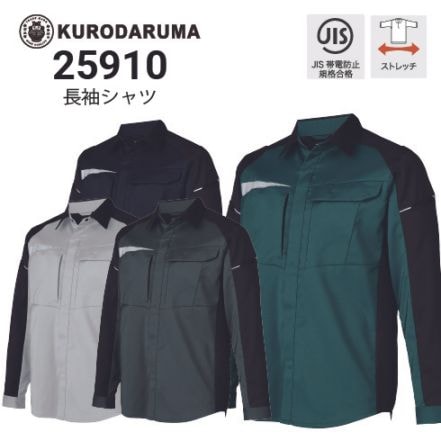 クロダルマ 25910 長袖シャツ 軽量 高ストレッチ JIST811適合 反射テープ エコ素材 2026新作|作業着・作業服の通販ワークキング【公式】