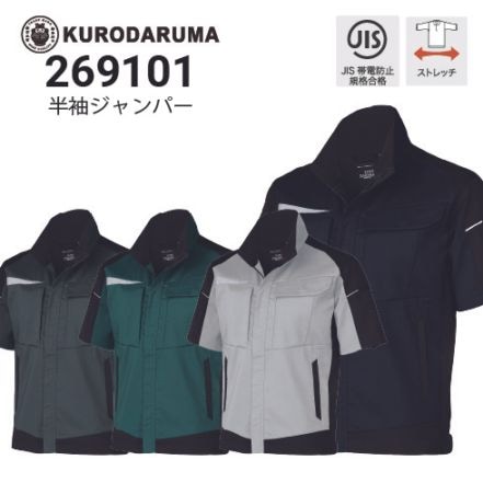 クロダルマ 269101 半袖ジャンパー 春夏 軽量 ストレッチ JIST811適合 反射テープ レディース対応 エコ素材 2026新作|作業着・作業服の通販ワークキング【公式】