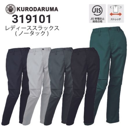 クロダルマ 319101 レディーススラックス(ノータック)(脇シャーリング) 春夏 軽量 ストレッチ JIST811適合 反射テープ エコ素材 2026新作|作業着・作業服の通販ワークキング【公式】