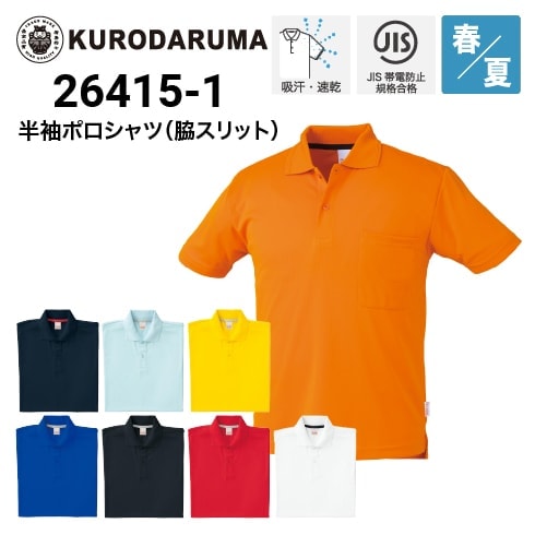 クロダルマ 26415-1 半袖ポロシャツ 脇スリット JIS T-8118|作業着・作業服の通販ワークキング【公式】