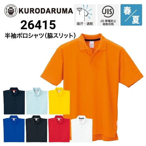 クロダルマ 26415 半袖ポロシャツ 脇スリット JIS T-8118|作業着・作業服の通販ワークキング【公式】