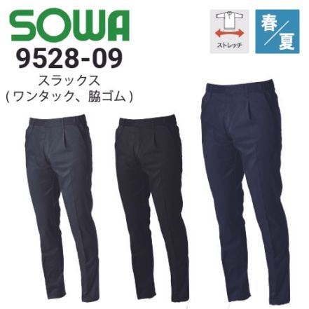 桑和 9528-09 スラックス 春夏 脇ゴム仕様 JIS ストレッチ 消臭 SDGs 2025新作|作業着・作業服の通販ワークキング【公式】