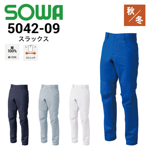 桑和 SOWA 5042-09 スラックス 秋冬 ストレッチ 防汚加工 綿100% ユニセックス 2020新商品|作業着・作業服の通販ワークキング【公式】