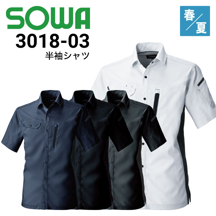 桑和 SOWA 3018-03 半袖シャツ 春夏 ストレッチ 制電性素材 TC 消臭 2020新商品|作業着・作業服の通販ワークキング【公式】