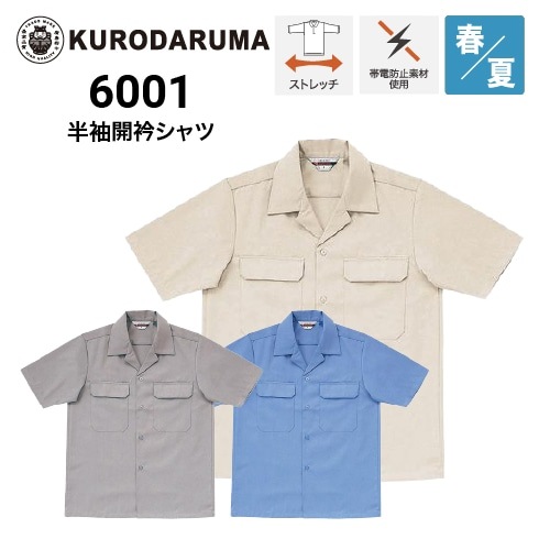 クロダルマ 6001 半袖シャツ 開衿えり JIS T-8118 春夏 |作業着・作業服の通販ワークキング【公式】