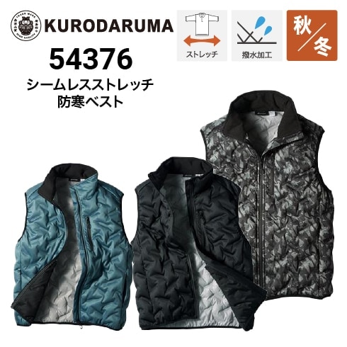 クロダルマ 54376 シームレスストレッチ防寒ベスト 秋冬 ストレッチ ポリエステル100% 撥水 防風 軽量 2023新作|作業着・作業服の通販ワークキング【公式】