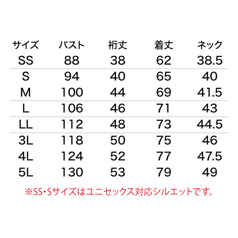 ※SS・Sサイズはユニセックスサイズです。