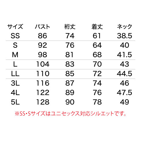 ※SS・Sサイズはユニセックスサイズです。