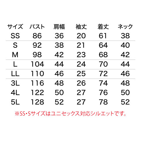 | サイズ | SS | S | M | L | LL | 3L | 4L | 5L |