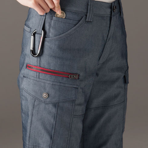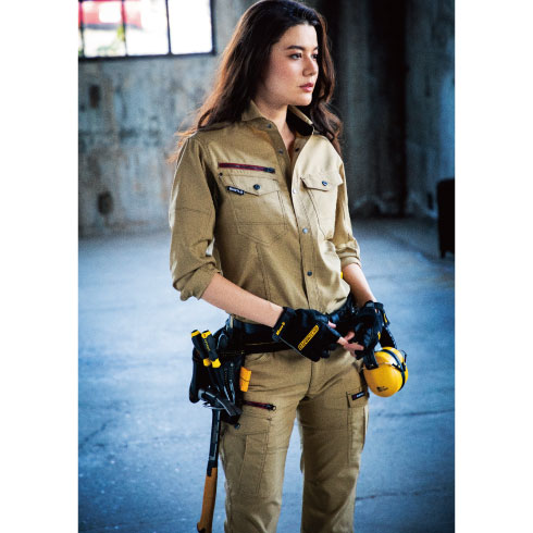 ストレッチ機能による快適な着用感と胸元にシンボリックに映えるレッドファスナーが魅力