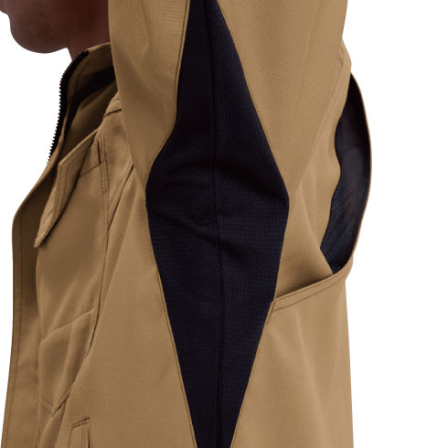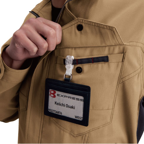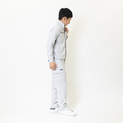 オーセンティックな企業ユニフォームを思わせるシンプルで都会的なデザインは流行に左右されない普遍的な魅力を備え、脇部に腕の可動域を広げるダイヤカットメッシュ機能を配備した、製品制電JIS T8118適合プロダクト。