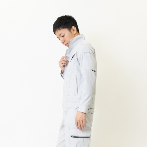 オーセンティックな企業ユニフォームを思わせるシンプルで都会的なデザインは流行に左右されない普遍的な魅力を備え、脇部に腕の可動域を広げるダイヤカットメッシュ機能を配備した、製品制電JIS T8118適合プロダクト。