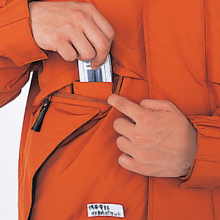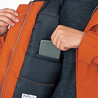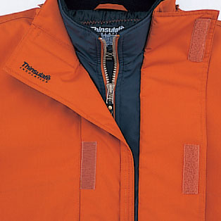 極寒の環境下で働くワーカーの為に中綿に「シンサレートハイロフト」を使用。高い保温性と軽量化に加え、耐水圧2,000mm・透湿度4,000g/m2/24hの本格透湿防水防寒です。