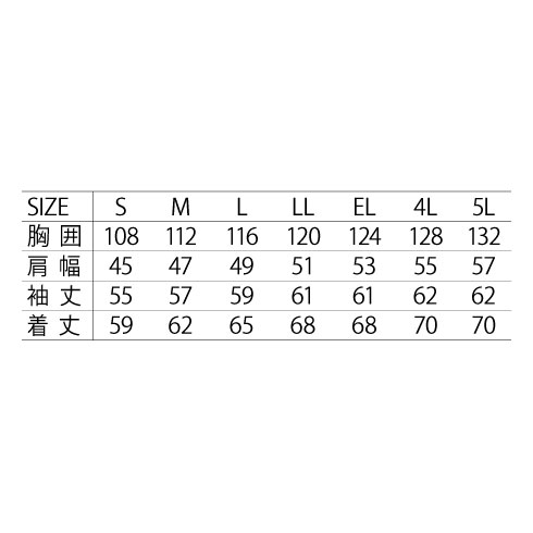 | サイズ | S | M | L | LL | EL | 4L | 5L |