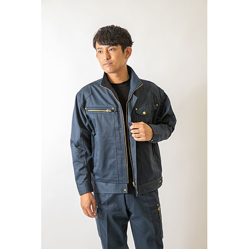 シャープなデザインに加え、発熱加工素材(D.P.コット®)を採用することで、未加工素材商品に比べて1~2℃温かいウォームビズ対応ワークウェア。
