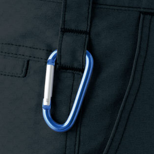 カジュアルウェアに多く使用される新素材「ハニカムリップストップ」を採用しています。凸凹とした蜂の巣状の斬新な模様と5連アイレットやデザインファスナーがカジュアルさを演出します。二重ポケットやペン差し、ループなどの基本的な性能も兼ね備えたカジュアルワークウェアです。
