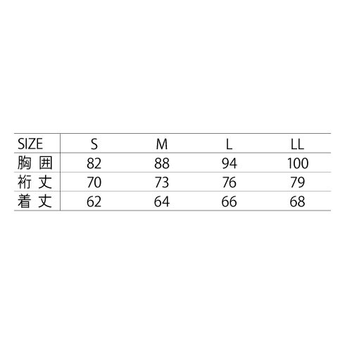 | 裄丈 | 70 | 73 | 76 | 79 |