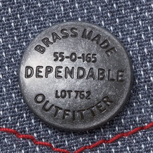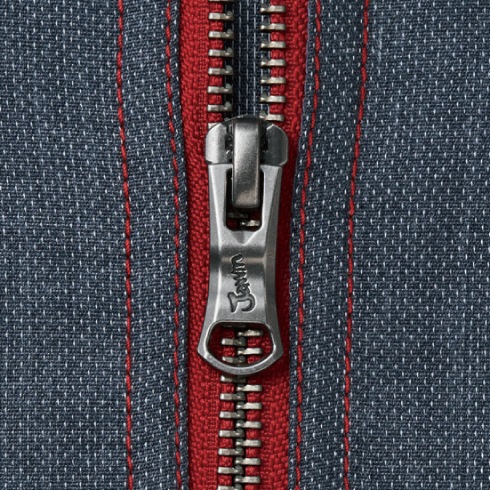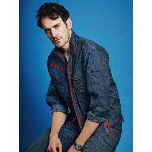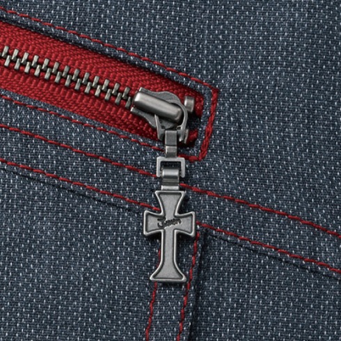 デニム調の素材感とジーニングテイストのデザインがカジュアルな雰囲気を醸し出す。