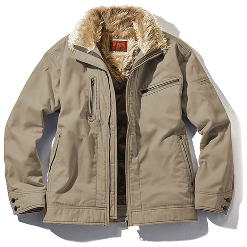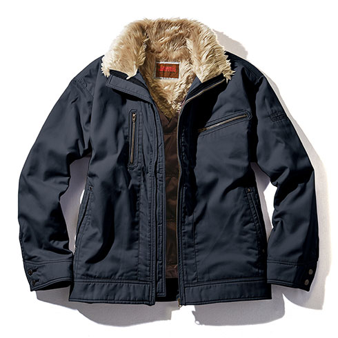 クールなデザインに加え、衿にはボアを装備し十分な保温性を実現しました。ワイルドに着られるライダース感覚デザインなので、ワークからカジュアルまで幅広いシーンに対応できます。静電気のパチパチを防ぐ帯電防止素材の使用、軽い水をはじく撥水加工を施しています。