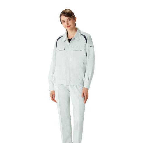 ファスナーやボタンの露出をなくして製品に傷をつけにくくした、デリケートワークに最適なユニフォームです。静電気を起こしにくくする帯電防止素材を使用するなどして製品を第一に考えた作りになっています。安心して作業に集中できる一着です。