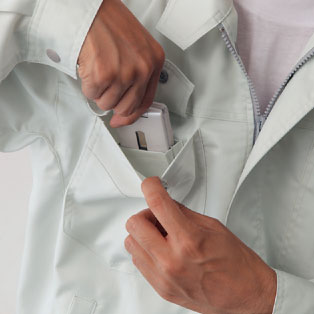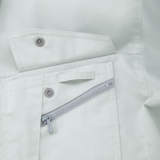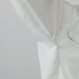 「エコ」「ストレッチ」「製品制電」「ウィングアームII」「タフ素材(パワーテックスプラス®)」の5つの機能を搭載しました。メーカーオリジナルのウイングアームIIは、脇から袖付までのオリジナル縫製を用いたことで脇下のツッパリを解消した機能です。腕の上げ下げが楽になり、ツッパリによるストレスを感じることなく作業ができます。