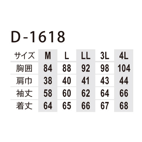 | 着丈 | 64 | 65 | 66 | 67 | 68 |